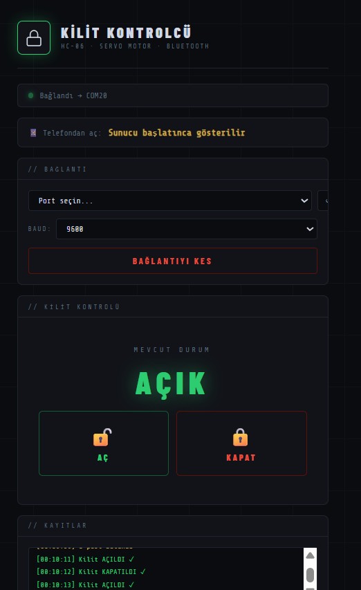 indirdiğimiz bu dosyaları klasöre çıkartıyoruz ve BASLAT.dat dosyasını sağ klik yönetici olarak çalıştırıyoruz tarayıcımızdan http://localhost:5000 veya http://bilgisayarınızın ip adres :5000 (benim bilgisayarımın bağlantısı http://192.168.1.15:5000 idi) adresini giriyoruz açılan web sayfasından size uygun bluetooth portunu seçerek bağlantıyı sağlayıp aç kapa yaparak kilit kullanımını sağlamış oluyorsunuz portu bilmiyorsanız sıra ile deneyiniz